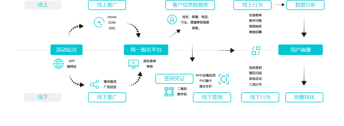 不管是微信还是线下活动,互动所达之处我们都可以为您提供数据服务,并且采用可视化管理手段,洞察真相